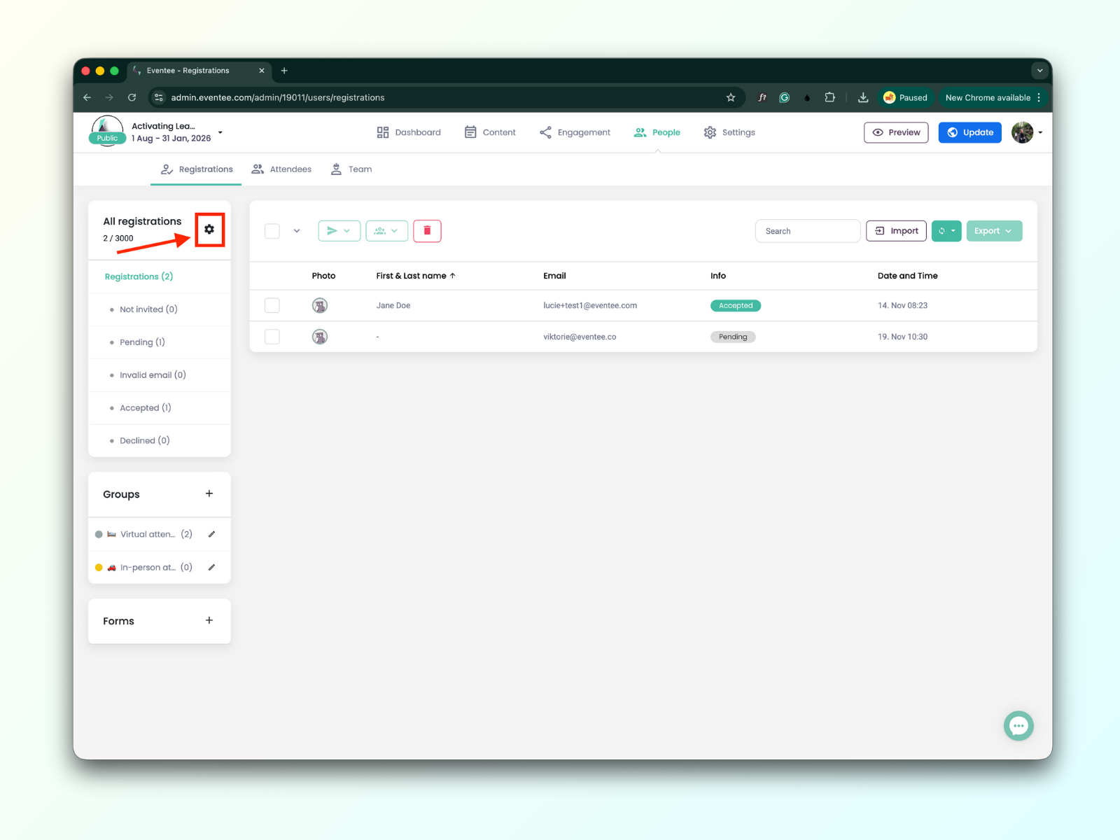 Lidé → Registrace → Ikona s ozubeným kolečkem