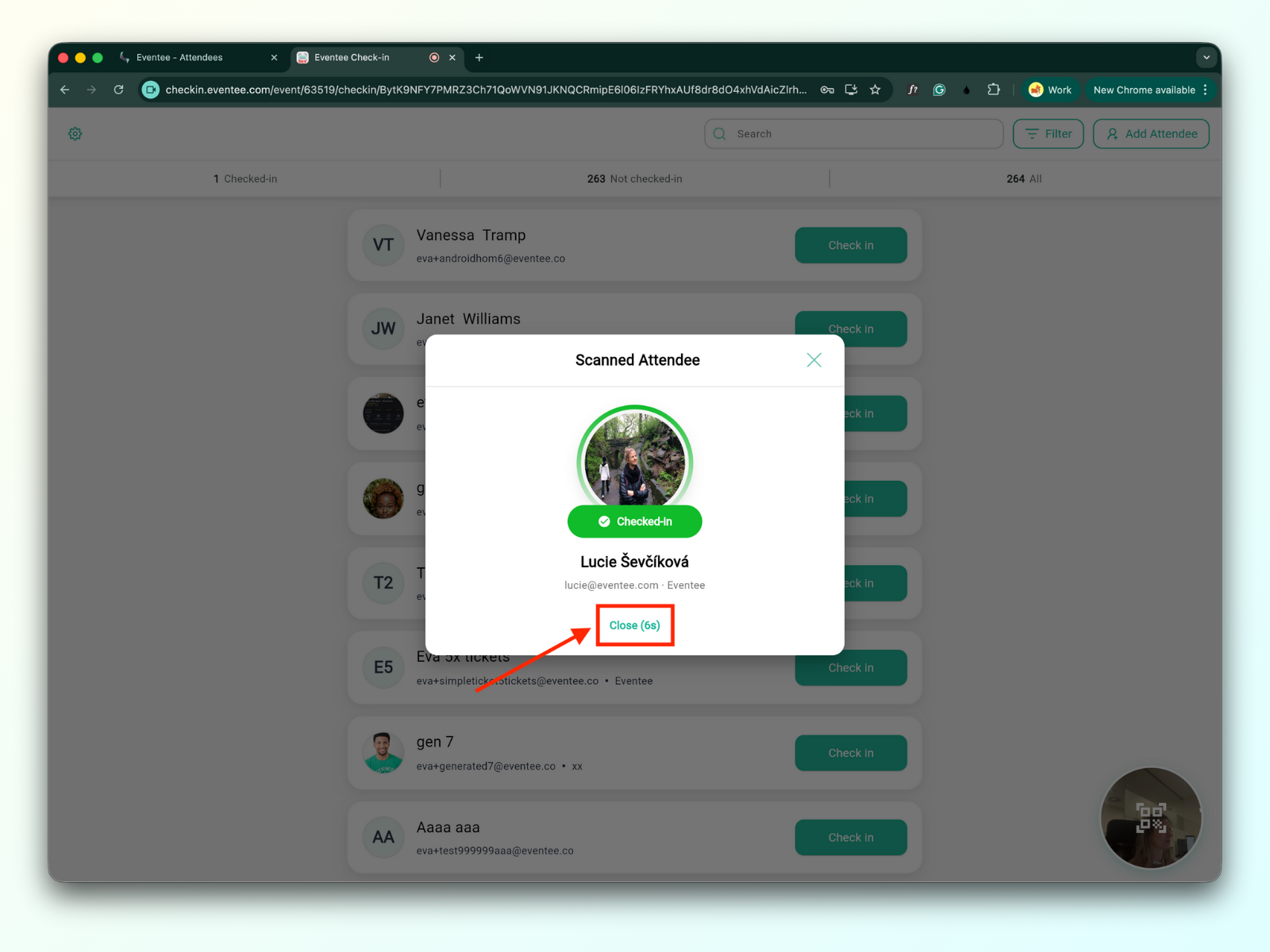 Teď už jen naskenujte vstupenku účastníka pomocí kamery.
