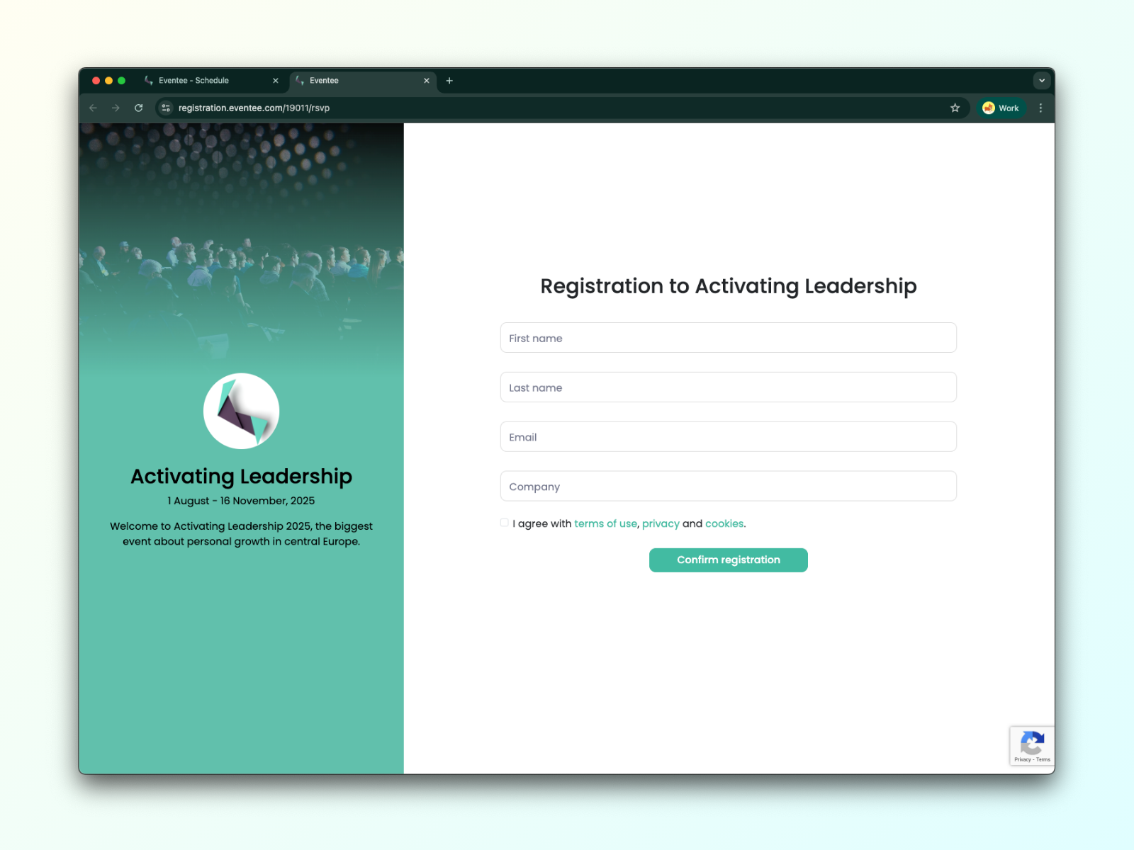 When “Open registration” is enabled, registrations are open, and your registrants can fill out the registration form.