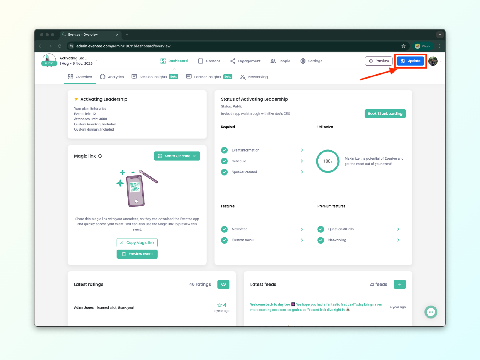 Click on the blue "Update" button located in the top-left corner next to your profile.