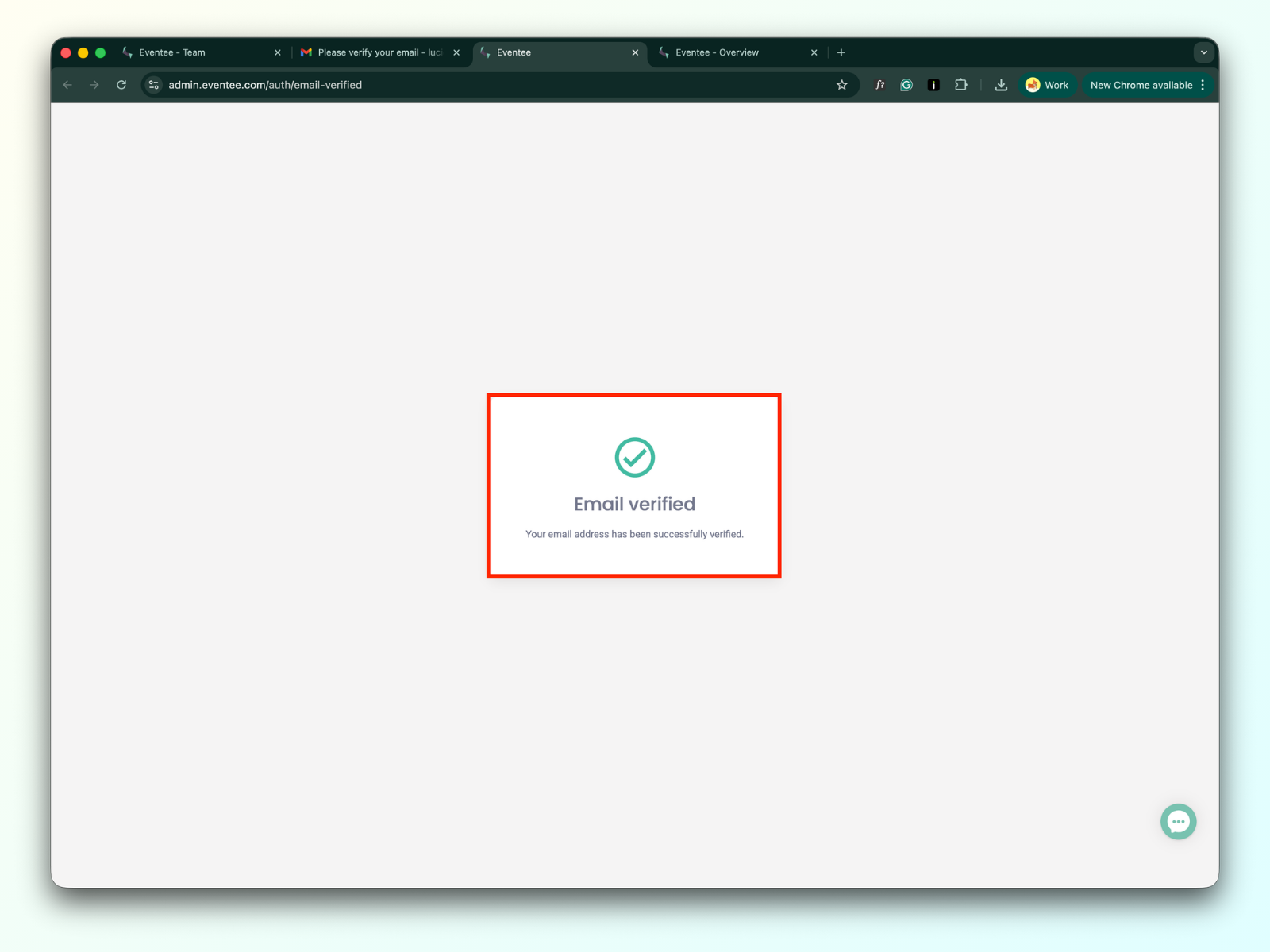 Clicking on the verify email button, you will see a message that your email was verified.