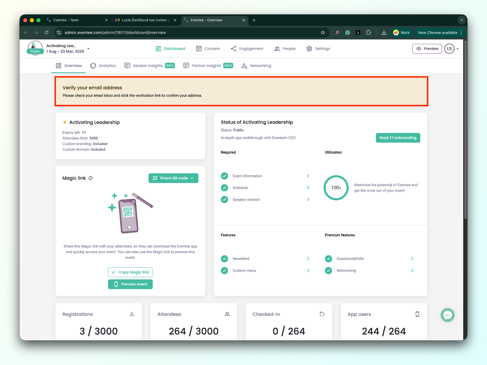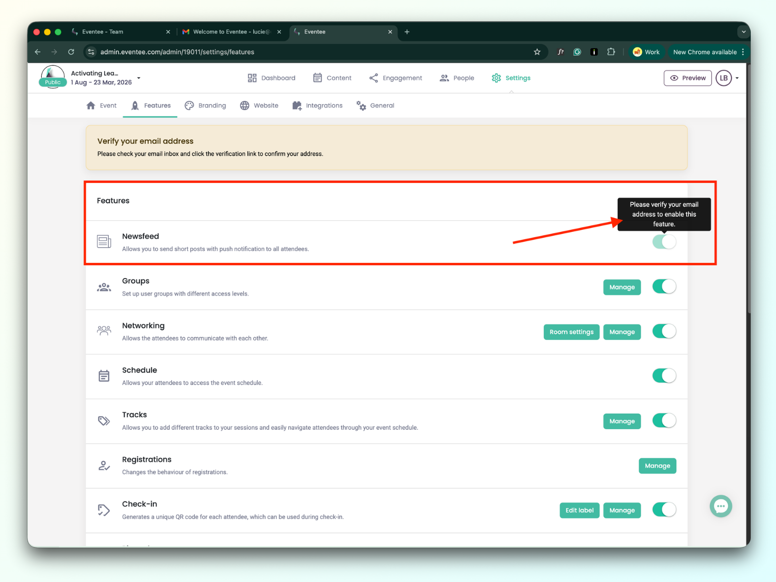 If your Eventee account is registered with a corporate email address and you are not receiving the verification email, it may be blocked by your company's anti-spam filtering system.