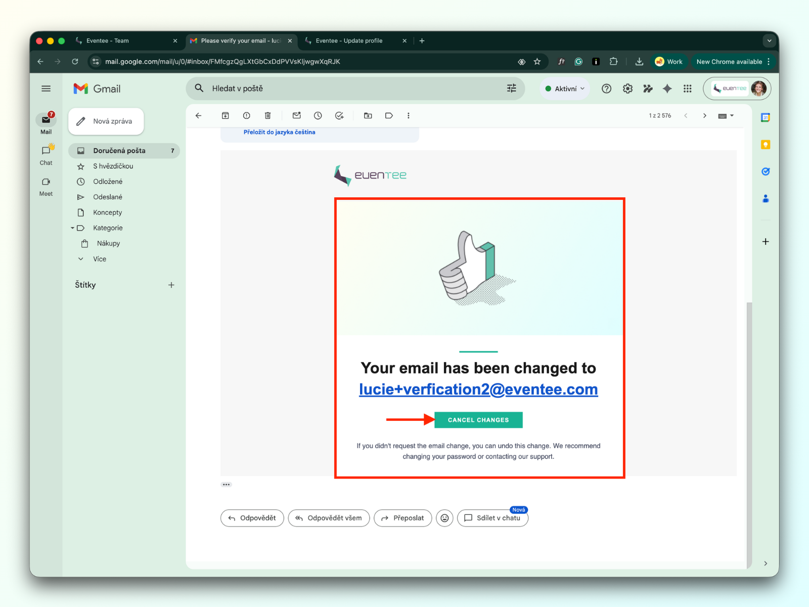4c. You will receive an email in which you can either accept the change and verify the new email or you can cancel the changes.