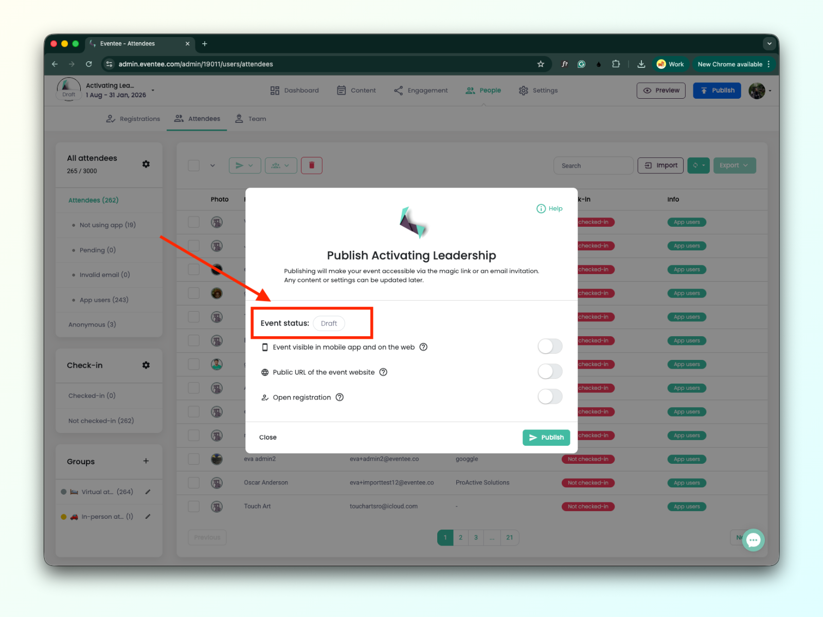 Este artículo explica las diferencias entre los eventos Draft y Public en Eventee, y cómo tus decisiones de publicación afectan la visibilidad y accesibilidad del evento.