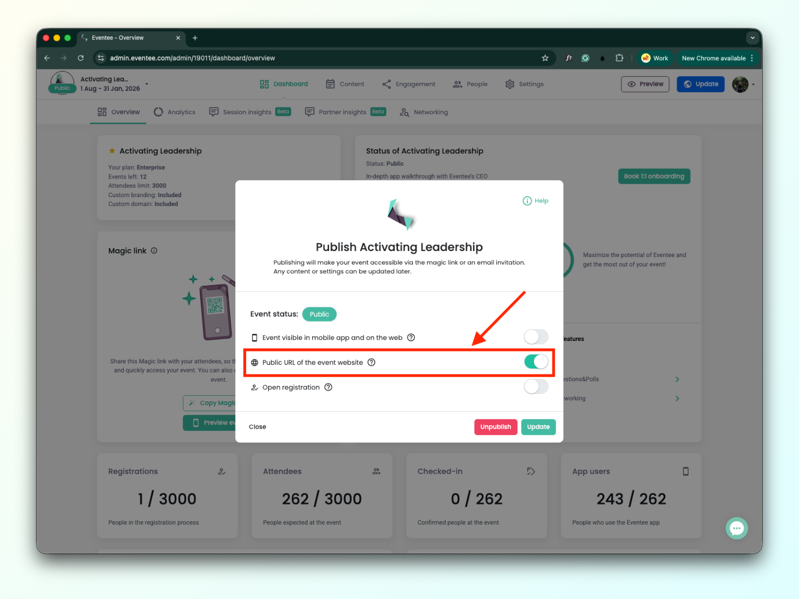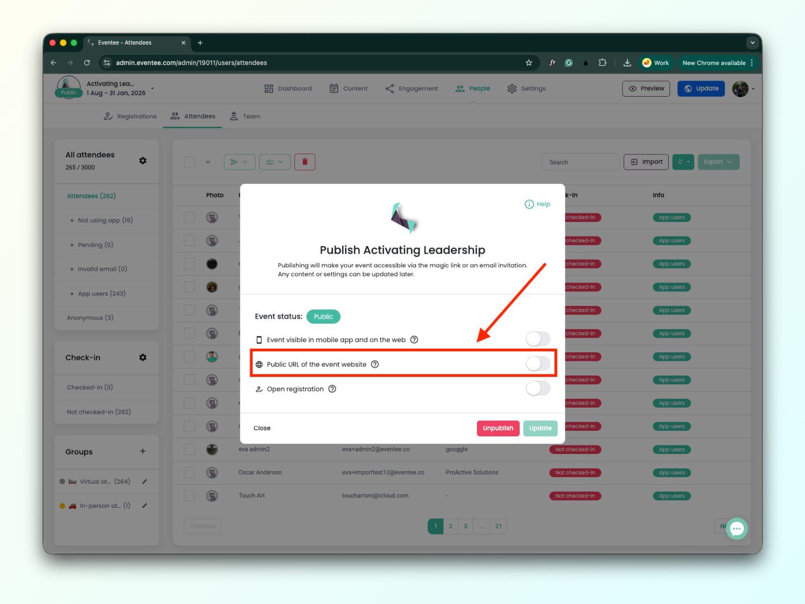 Hacer que tu evento sea público de cualquier forma desbloquea la posibilidad de: